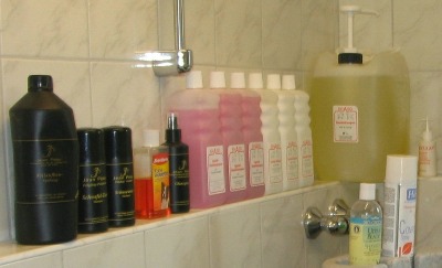 Beim Baden werden bei uns nur tierspezifische Pflegeprodukte verwendet. Dabei wird auf die Fell- und Hautbeschaffenheit Ihres Hundes besonderen Wert gelegt.