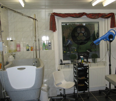 Auch unsere Badewanne ist höhenverstellbar. Dies ist gerade bei großen und schweren Hunden sehr praktisch, da auch sie bequem einsteigen können. Bei wohltemperiertem Wasser macht es auch dem grössten Bademuffel Spaß sein Fell einseifen zu lassen.