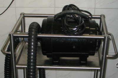 Dies ist unser Hochdruck- Föhn. Denn für uns ist eine Föhnbox TABU! Erst wird ihr Liebling bei uns mit frisch gewaschenen Handtüchern vorgetrocknet. Danach wird mit dem Föhn die Restnässe herausgeblasen.
